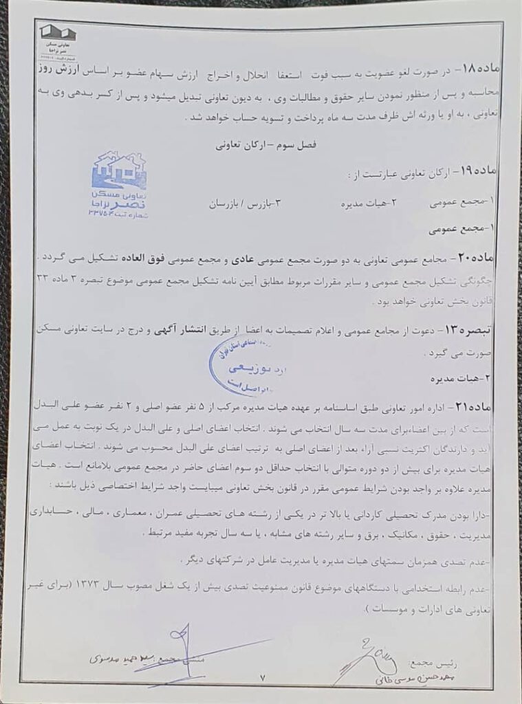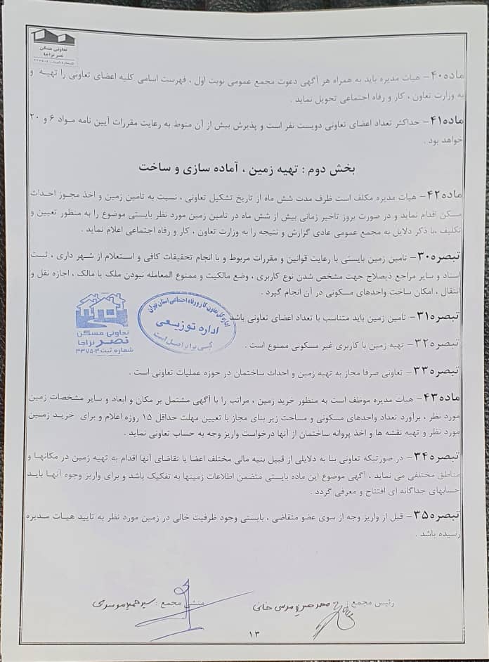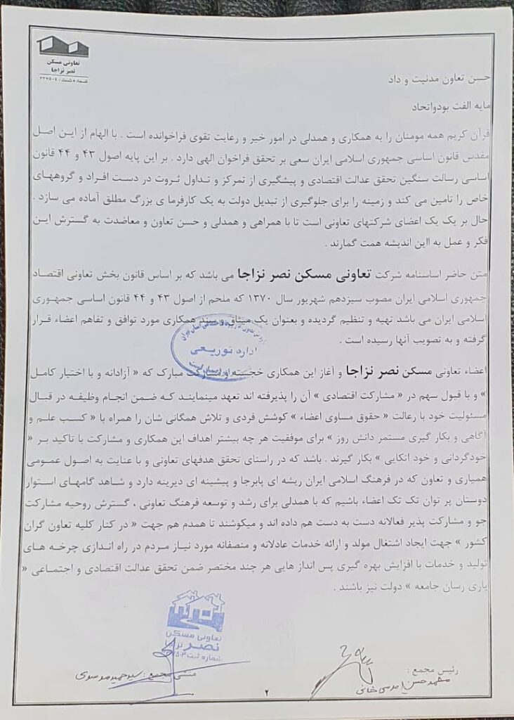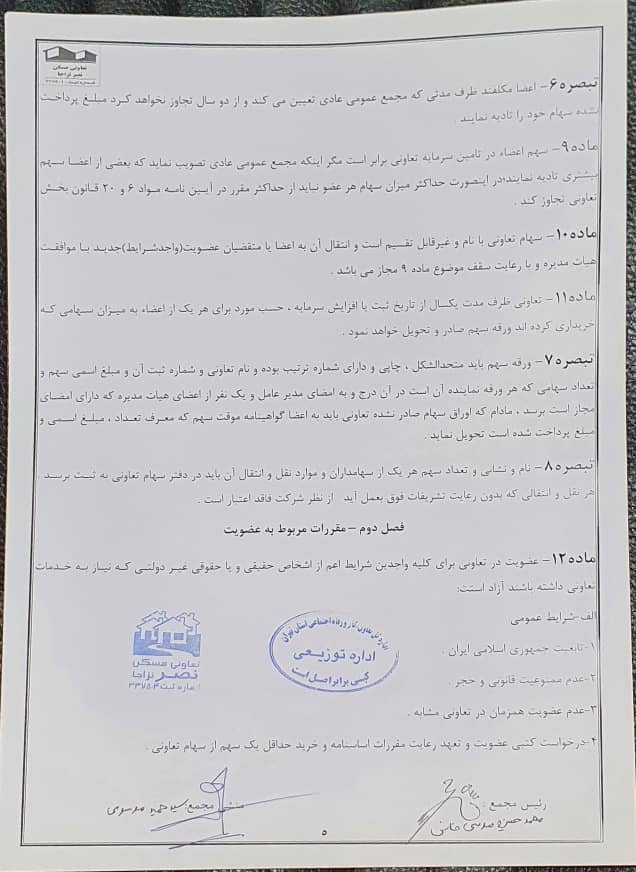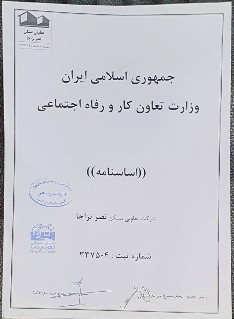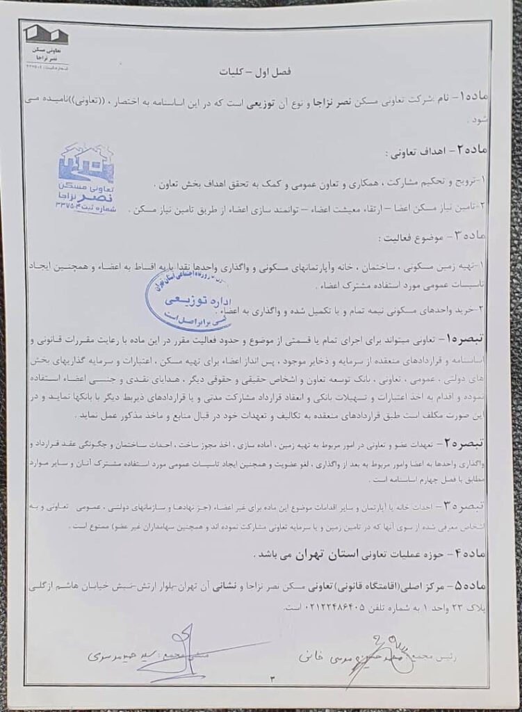 اساسنامه شرکت تعاونی مسکن نصر نزاجا