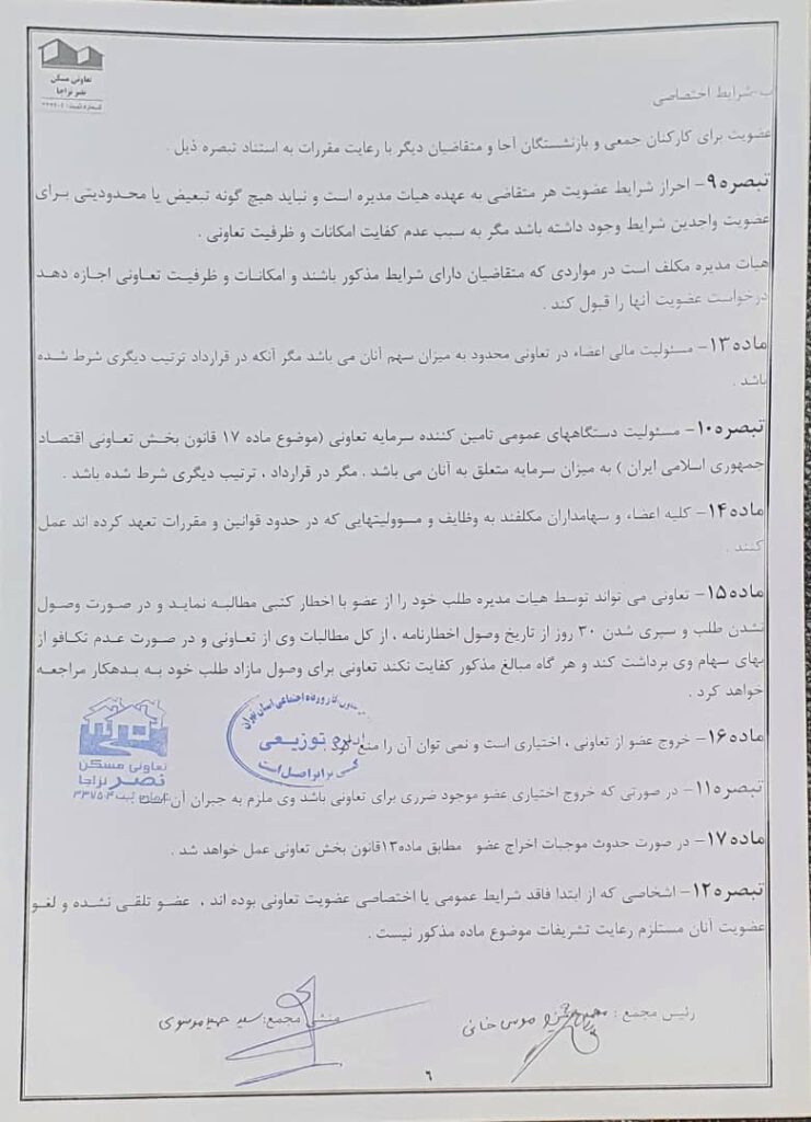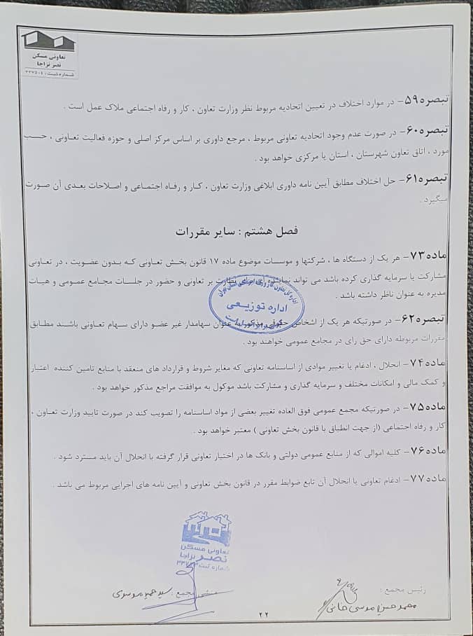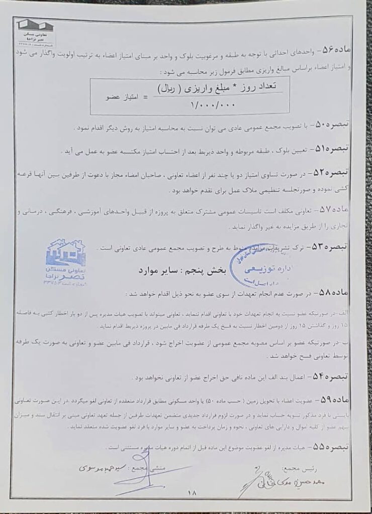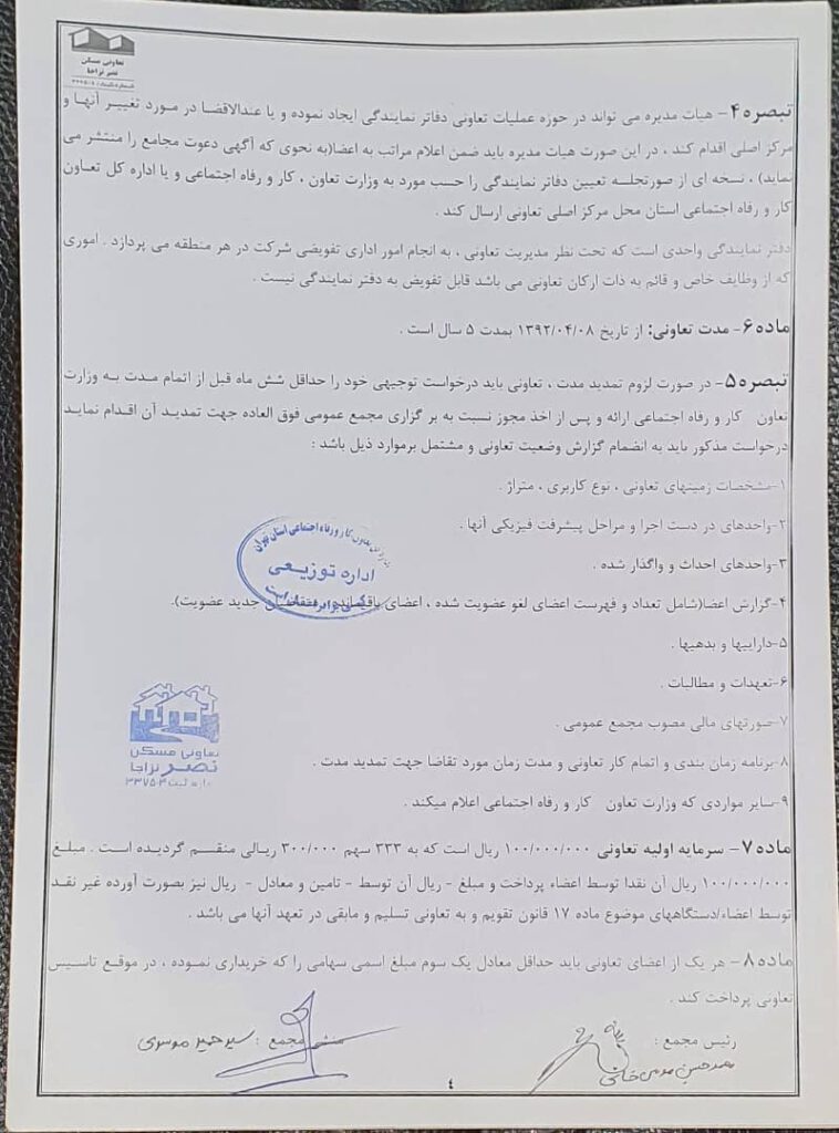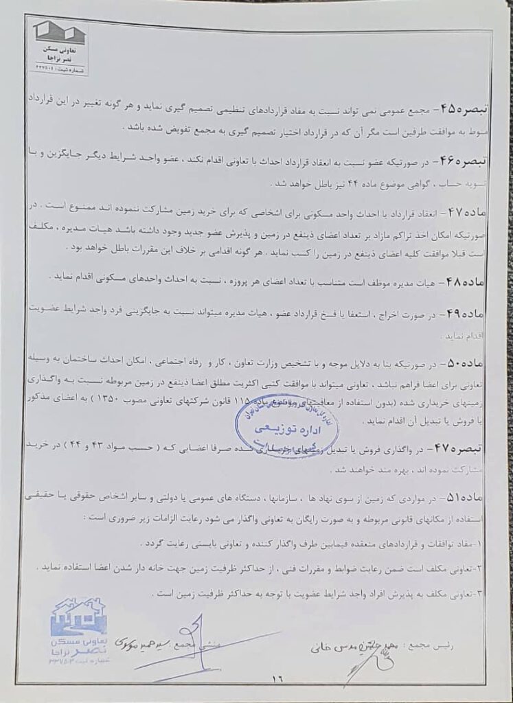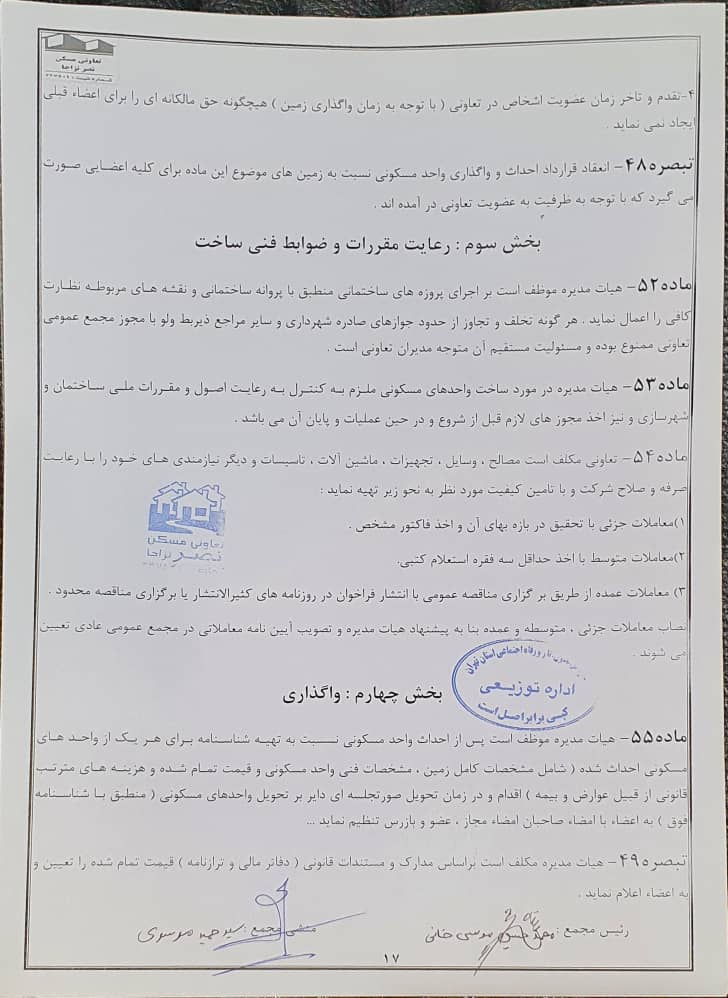 اساسنامه شرکت تعاونی مسکن نصر نزاجا