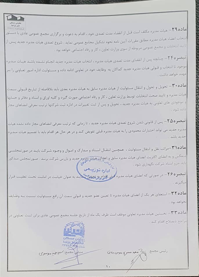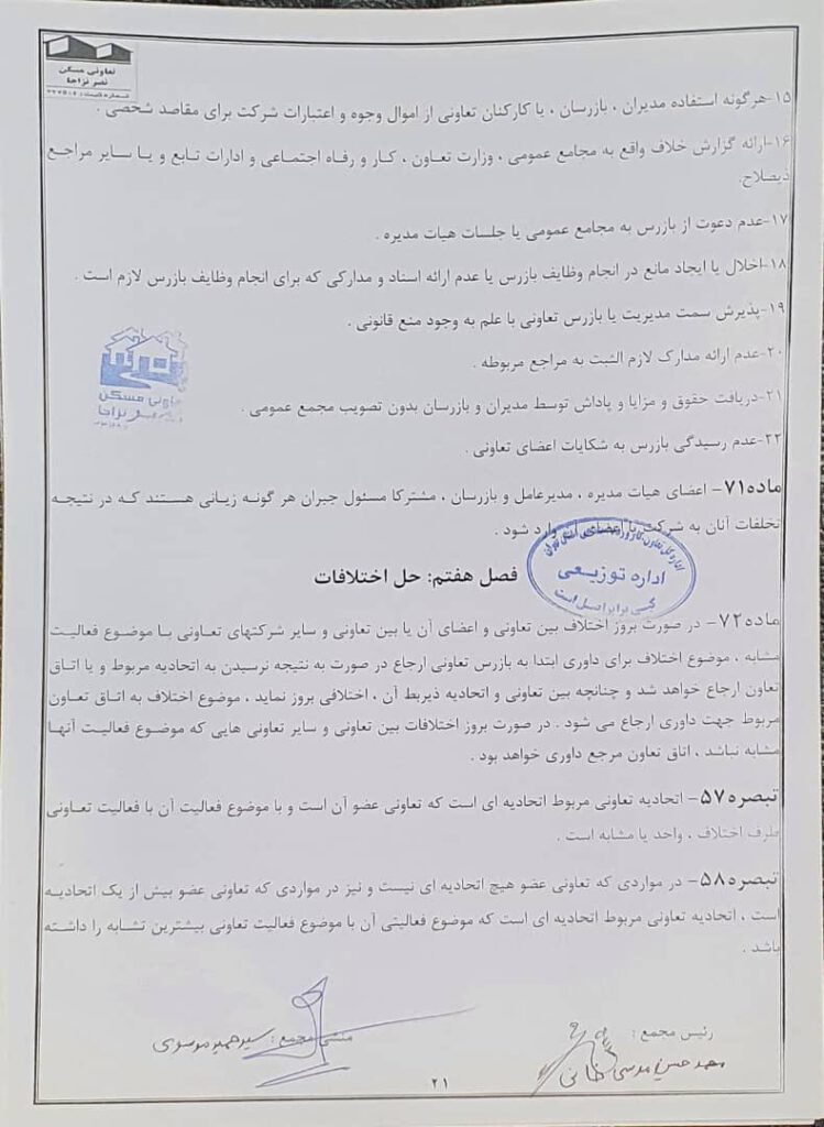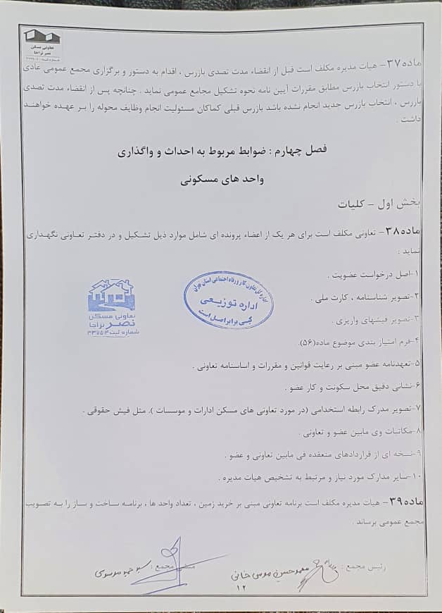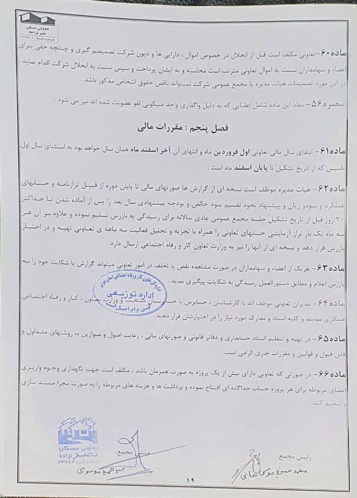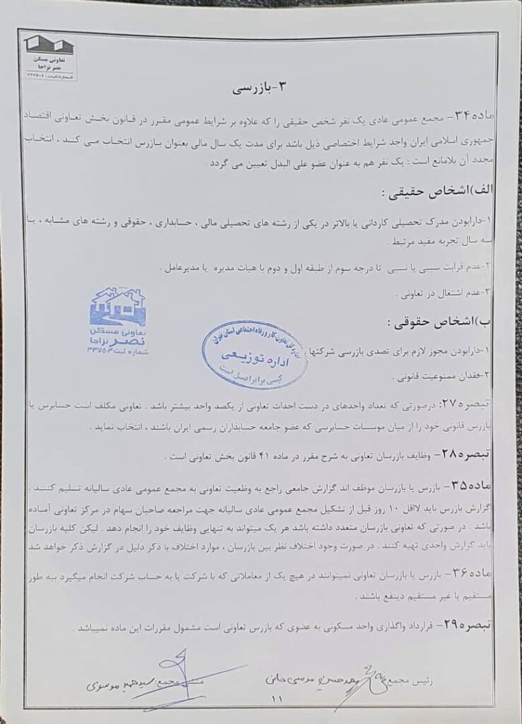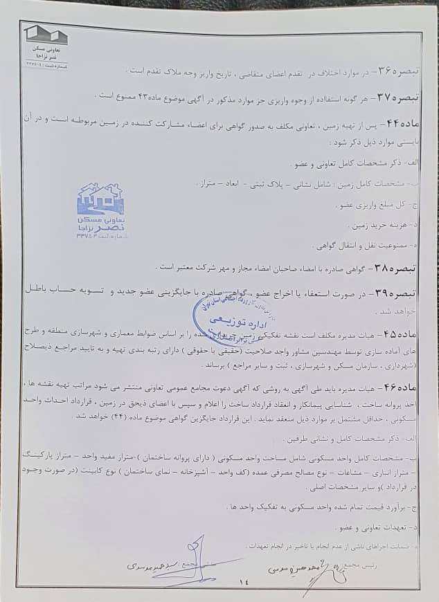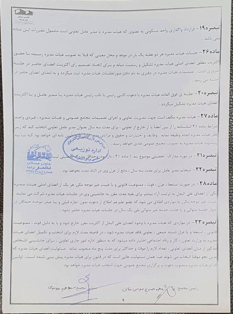 اساسنامه شرکت تعاونی مسکن نصر نزاجا