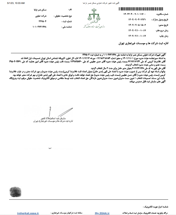 آگهی تغییرات شركت تعاوني مسكن نصر نزاجا انتصاب اعضاء هیئت مدیره تعاونی oxin-manage2023-05-23T20:24:09+03:30