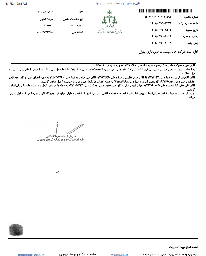 آگهی تغییرات شركت تعاوني مسكن نصر نزاجا در خصوص تغییرات هیئت مدیره oxin-manage2023-05-23T20:23:14+03:30