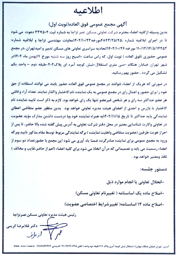 آگهی مجمع عمومی فوق العاده (نوبت اول) – برگزاری جلسه مجمع عمومی فوق العاده در تاریخ 17 بهمن 1402 oxin-manage2024-01-23T12:39:32+03:30