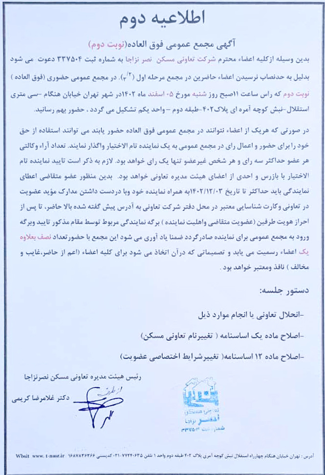 آگهی مجمع عمومی فوق العاده (نوبت دوم) – برگزاری جلسه مجمع عمومی فوق العاده در تاریخ 5 اسفند 1402 oxin-manage2024-02-05T11:23:21+03:30