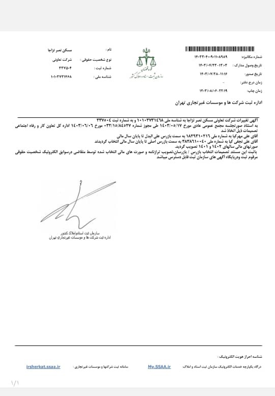 آگهی تغییرات شرکت تعاونی نصر نزاجا